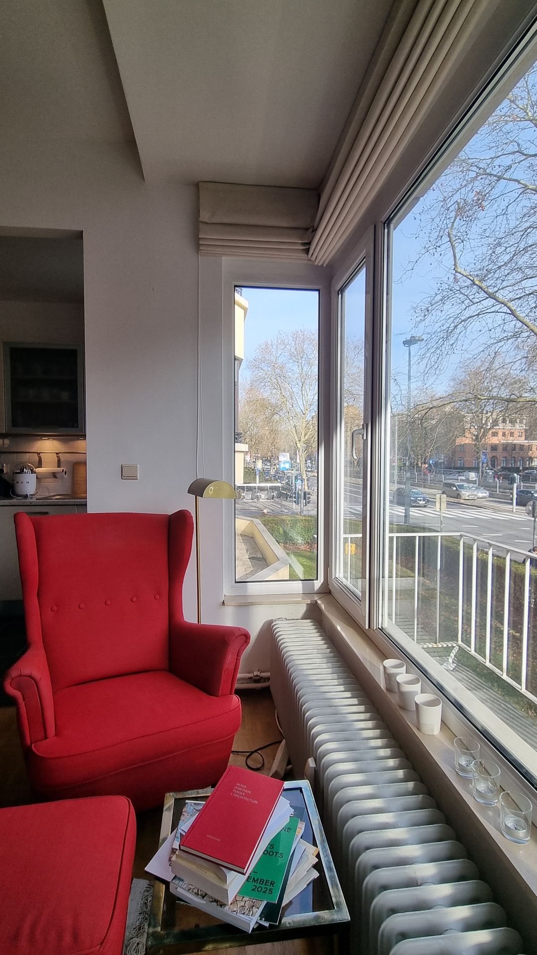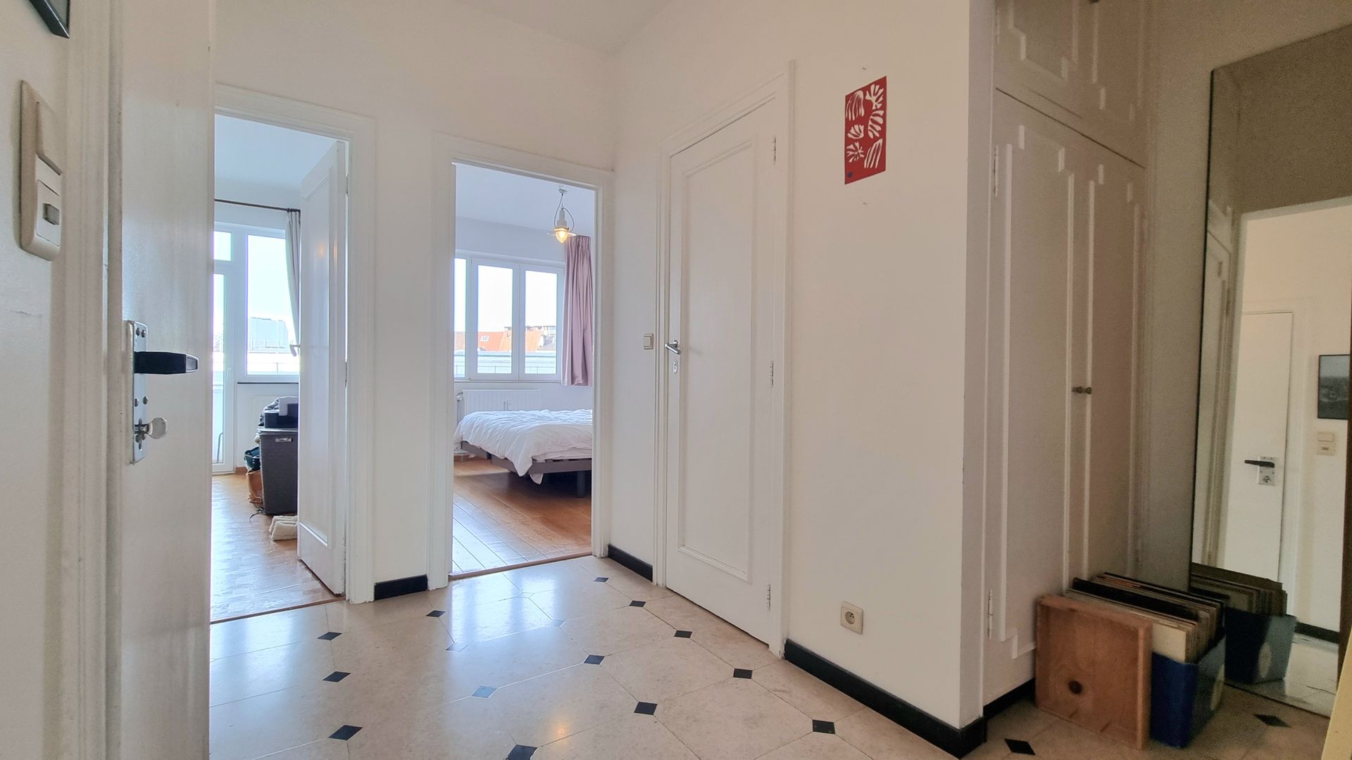 L’appartement bénéficie de beaux espaces de vie, lumineux et confortables. Le séjour et la cuisine américaine se tournent vers le Sud-Est et l’avenue arborée, avec une terrasse accessible depuis le living. Les chambres, se tournent vers l’Ouest et la lumière du soir. Une seconde terrasse est accessible depuis la petite chambre. Le beau hall d’entrée central offre de nombreux rangements intégrés. Parquet bois dans le séjour et les deux chambres.
