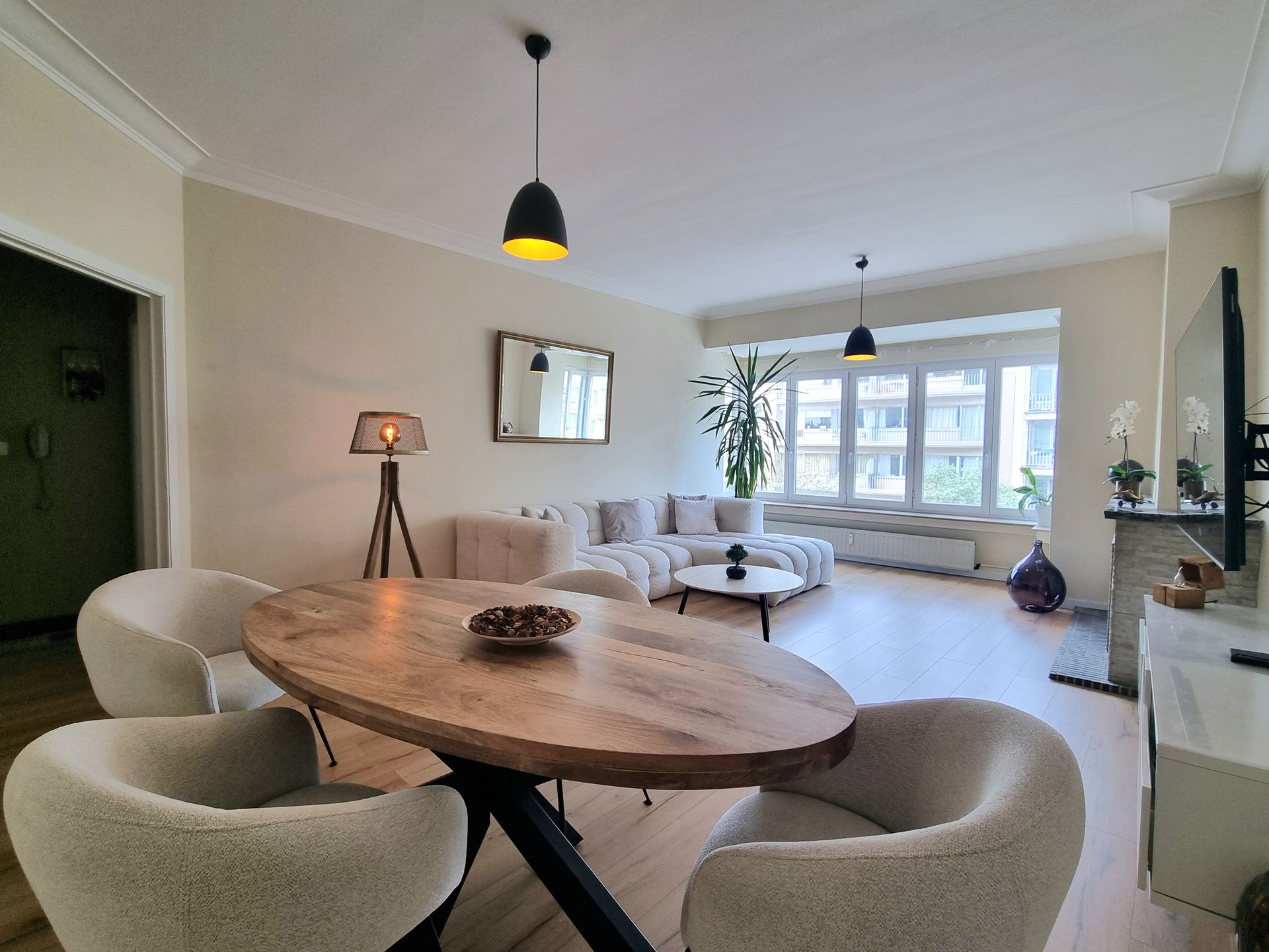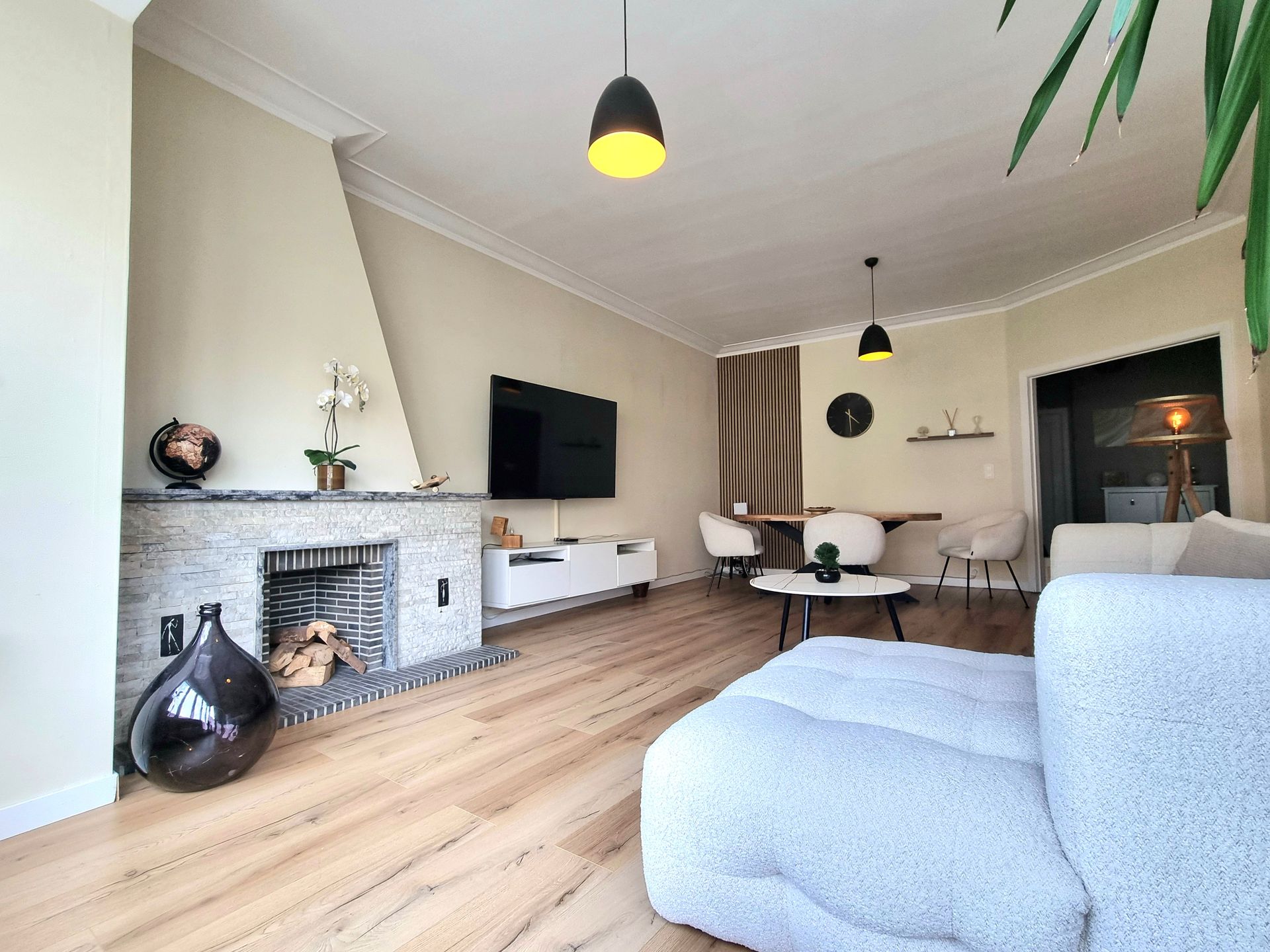 Le bien s'organise autour d'un large hall d'accueil central. Tourné vers la belle avenue Neptune, le séjour profite d'une lumière abondante apportée par le bow-window en avancée.